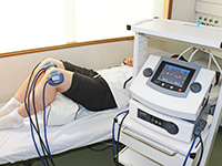 腰または首を牽引する治療法です。牽引し関節の隙間や筋肉を伸ばす事により、神経の圧迫が原因で起こる痛みやしびれ感を緩和させます。当院には2種類の牽引装置があり、症状や状況によって使い分けております。